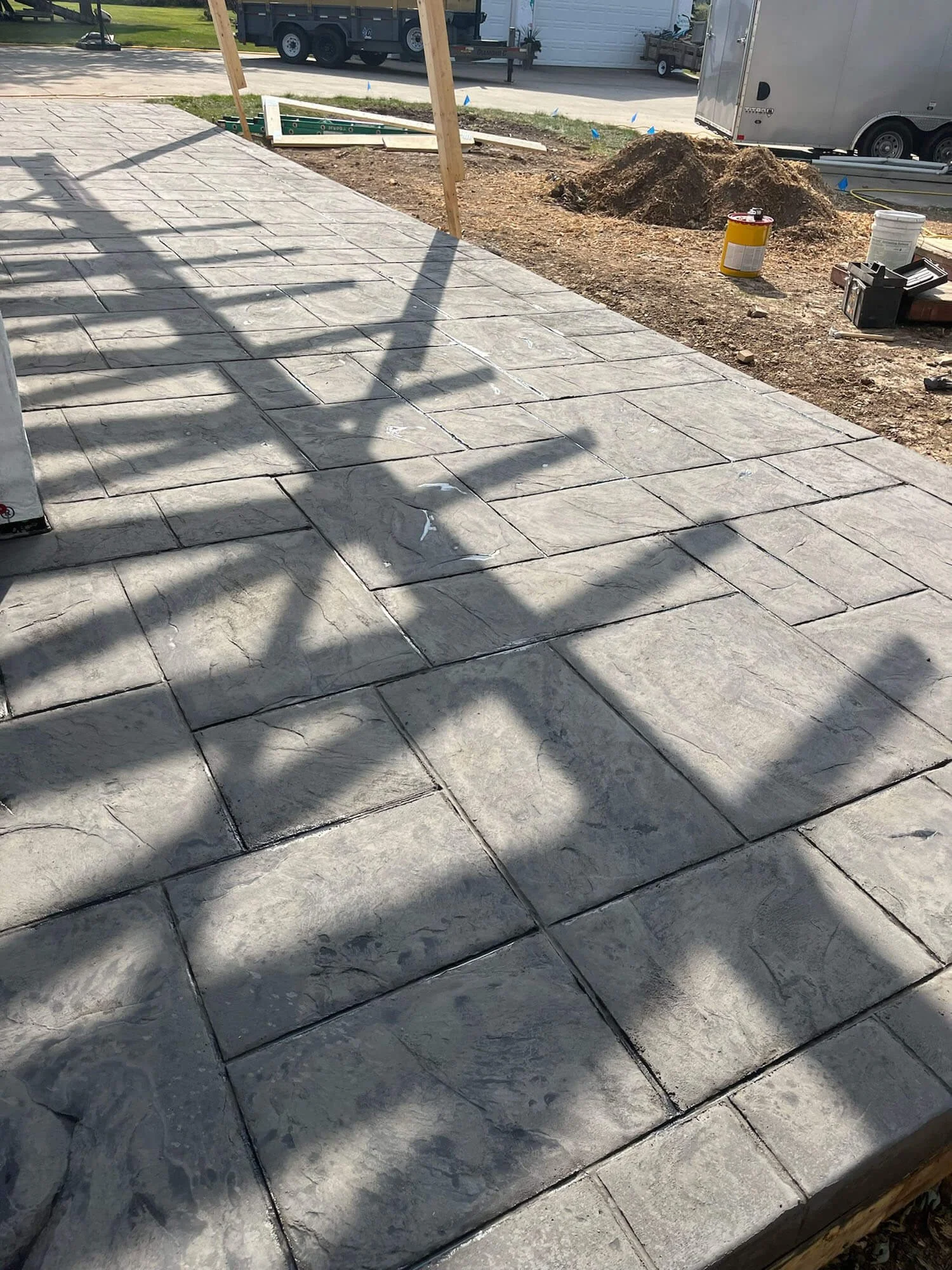 We know it’s tempting to check it out up close, but fresh concrete needs a full day to cure before any foot traffic. We’ve even seen chipmunk prints appear just a few hours after finishing—cute, but not ideal for your patio. Keep people, pets, and paws off it for 24 hours.